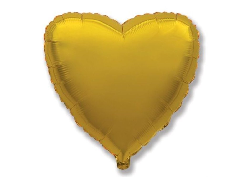 Balón fóliový 45 cm ve tvaru srdce - zlatý. Vhodný k naplnění héliem i vzduchem.