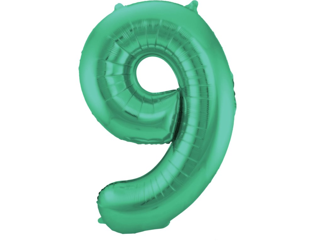Balón fóliový 86 cm metalický - matný (saténový) - zelený. Číslice 9. Vhodný k naplnění héliem i vzduchem.