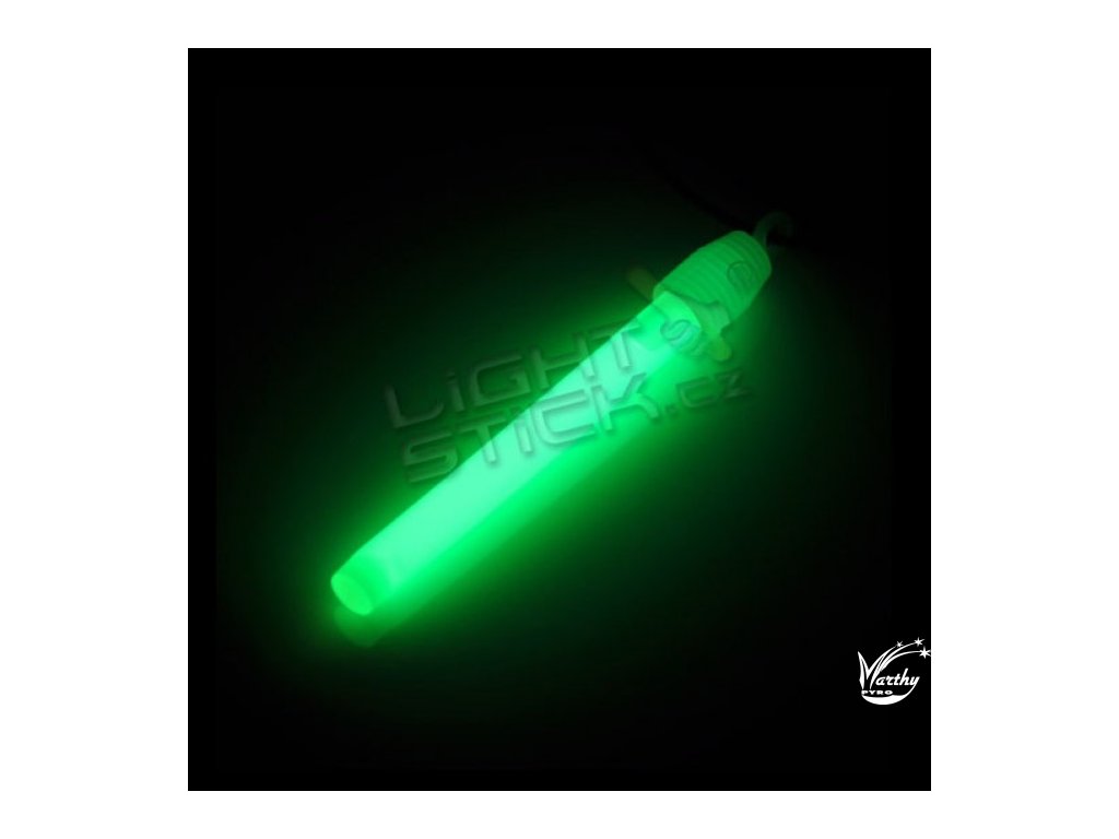 Svítící přívěsek, svítí 6-8 hodin. Balení obsahuje jednu tyčinku 7,5mm x 7,5cm a jeden nástavec k zavěšení se šňůrkou.
